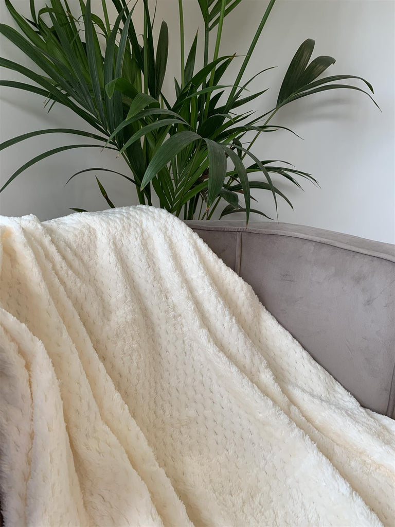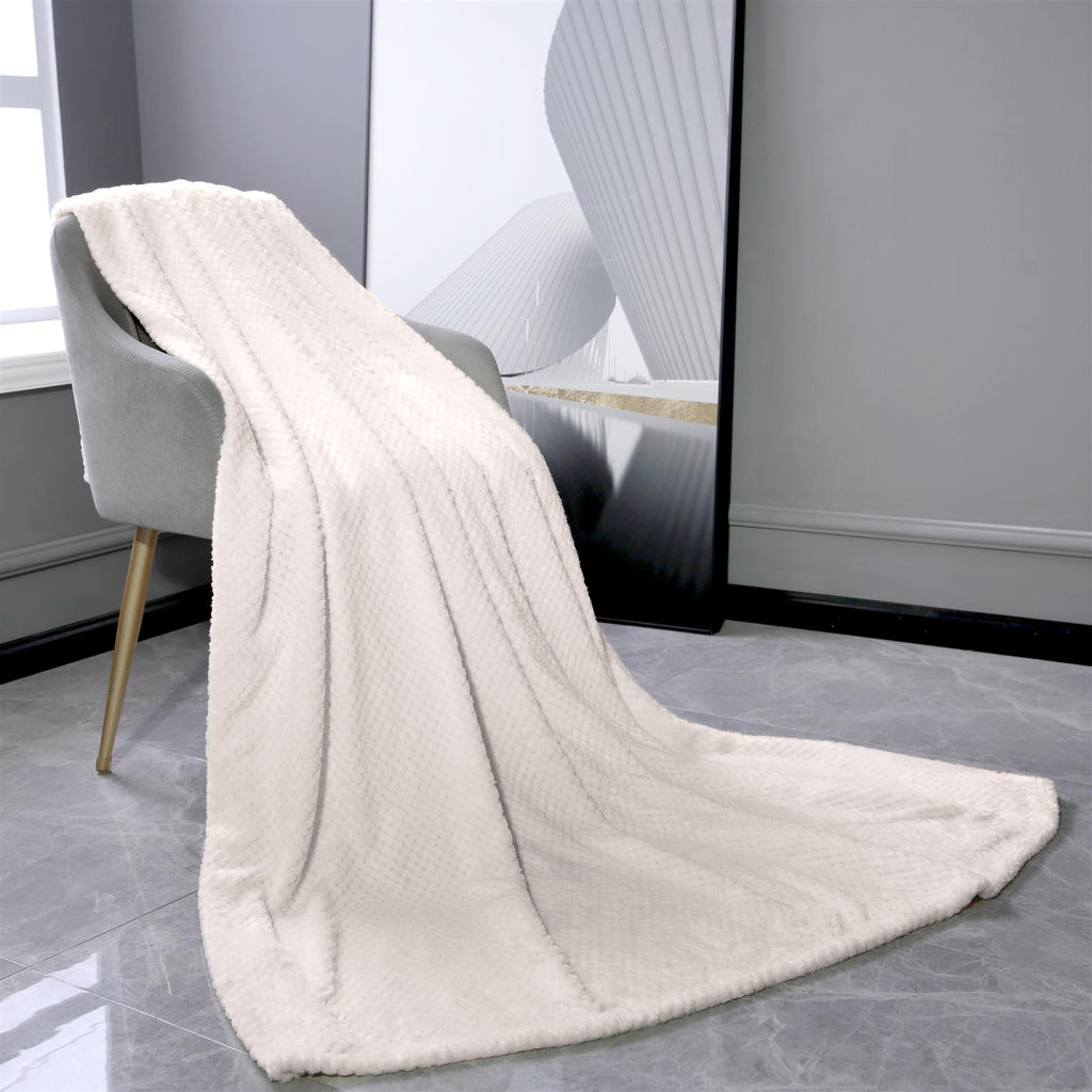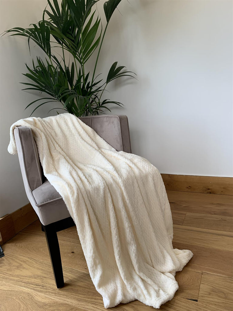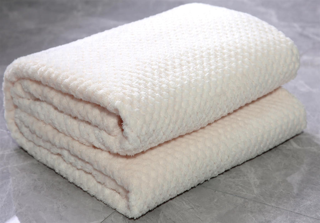 Cream Super Soft Honeycomb Throw Blanket