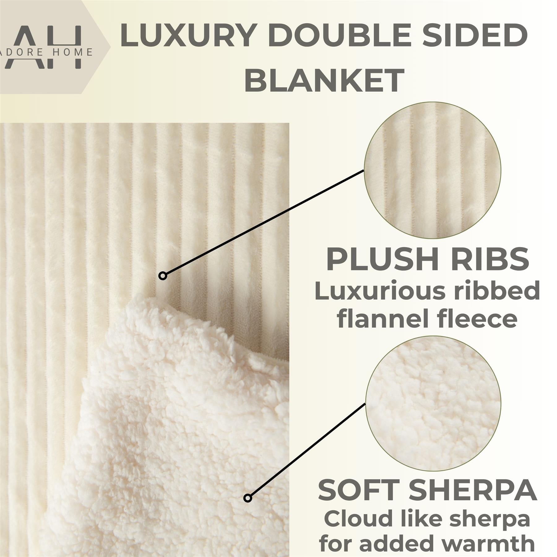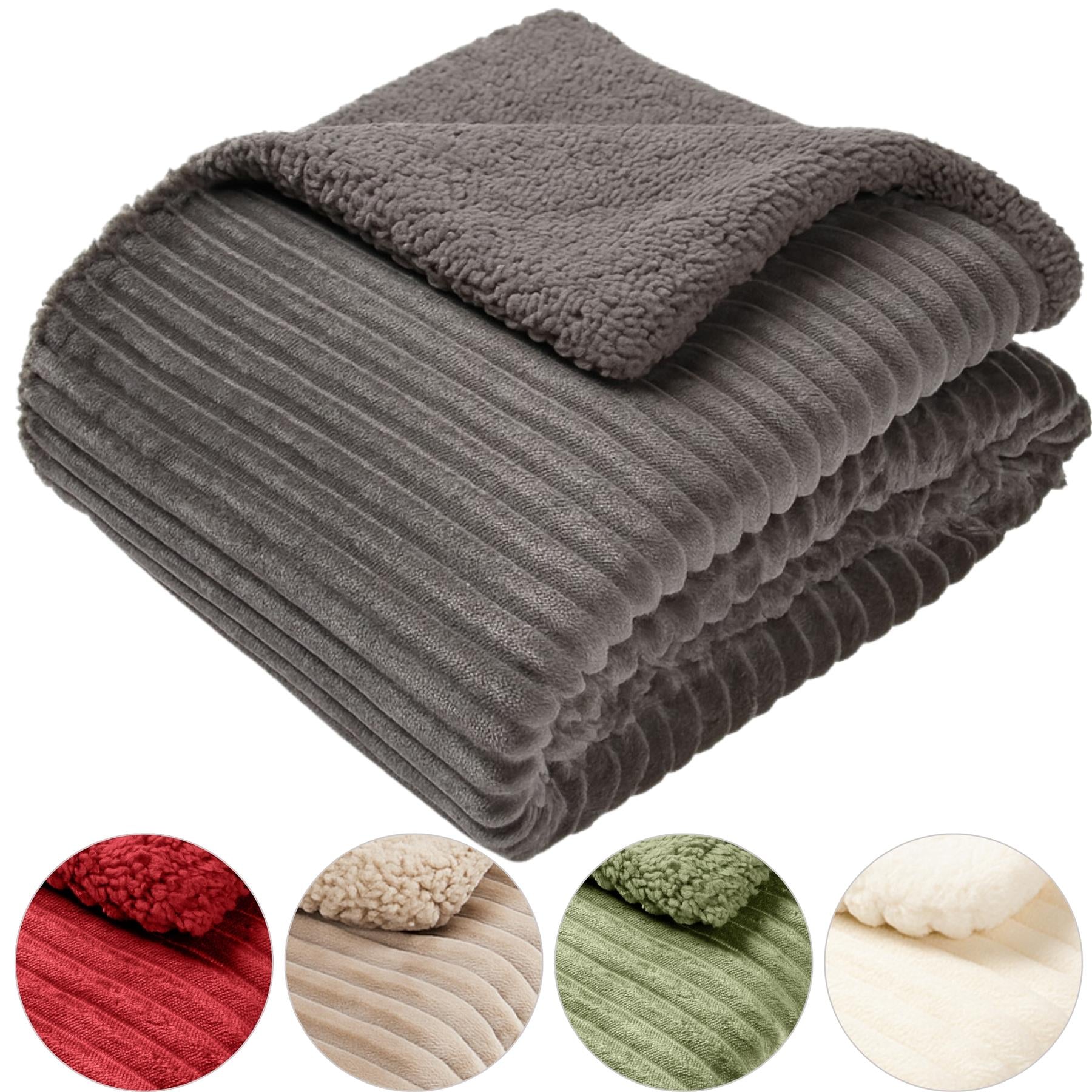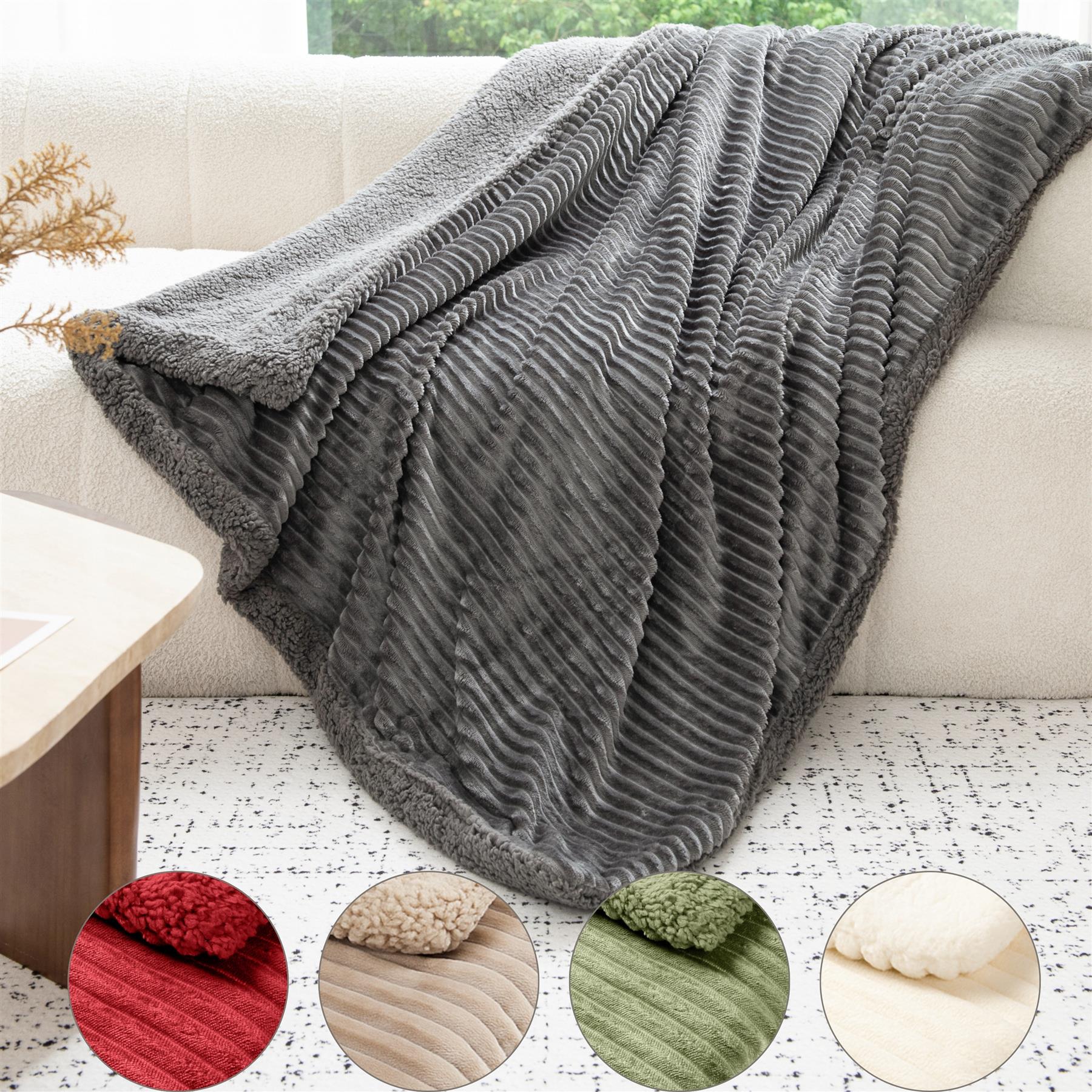 Ribbed Fleece Sherpa Throw 130x160cm Double Sided Blanket