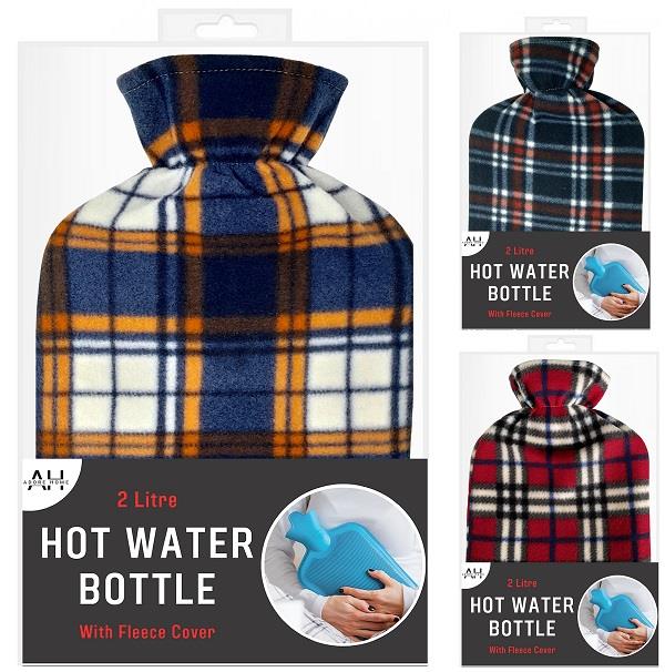 Hot Water Bottle With Fleece Cover, 2L, Asst Check