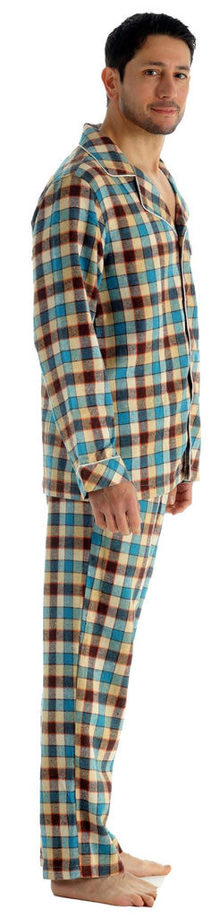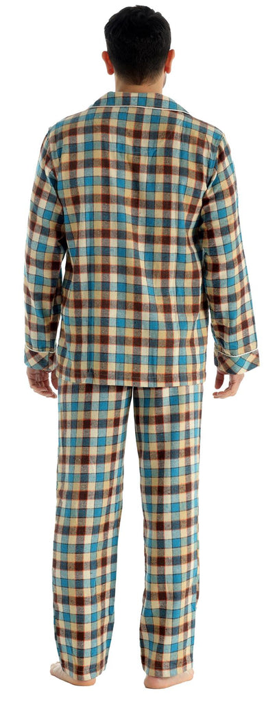 Mens Brushed Pyjama Set Sizes S-XL, Blue Check ZA07